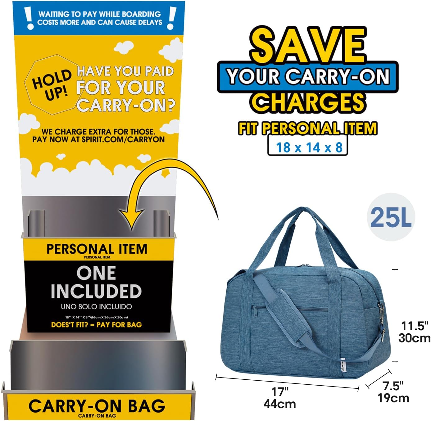 – **Airline Approved:** Conforms to Spirit Airlines’ personal item size requirements, ensuring hassle-free boarding and avoiding extra baggage fees.